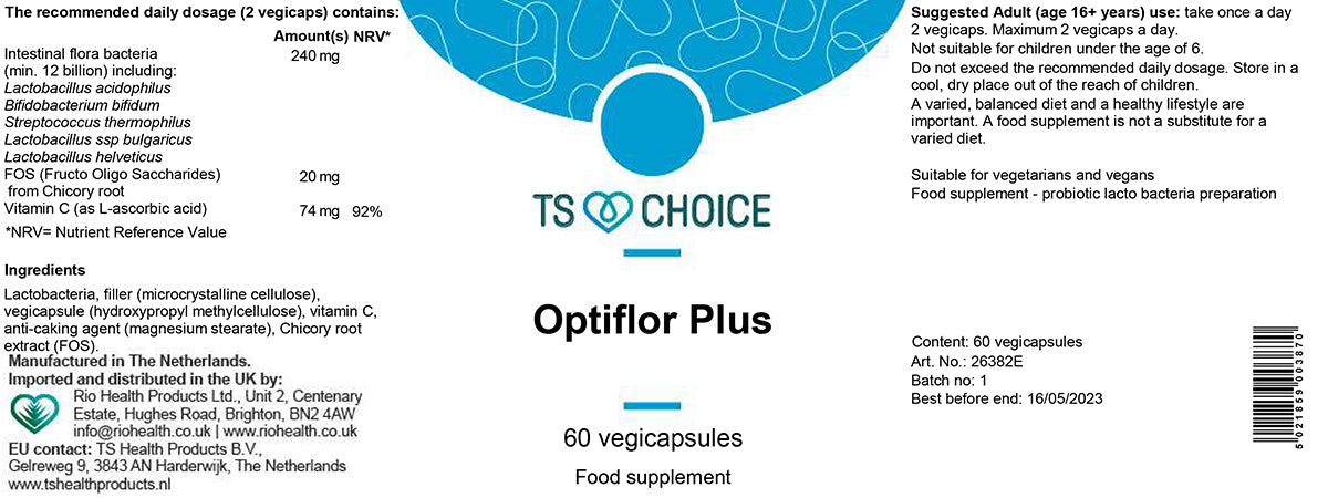 A high-strength probiotic with added vitamin C. Contains minimum 12 billion bacteria in the recommended daily dose (including 5 strains).