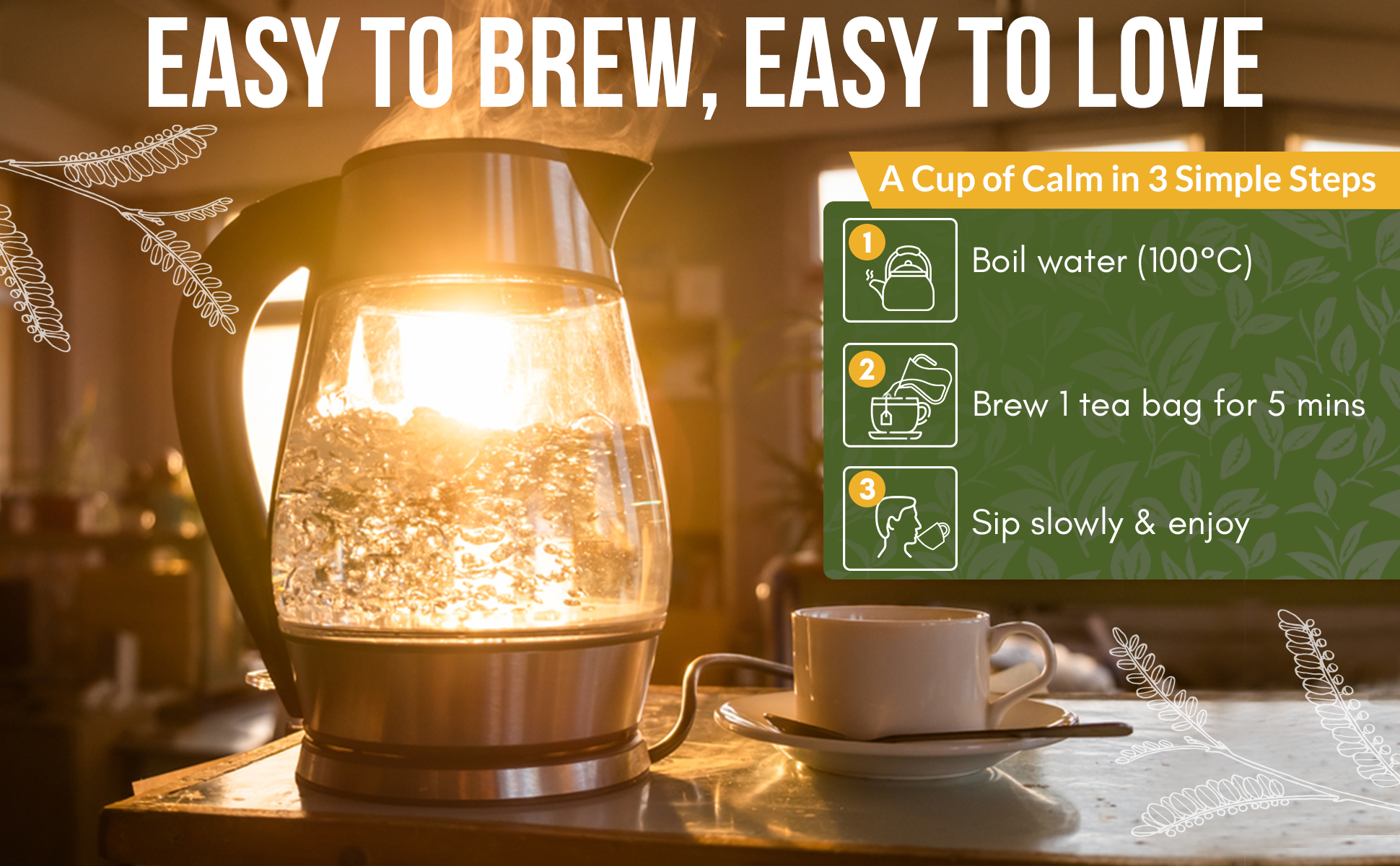 Tea Bags: Infuse1 teabag in freshly boiled water. Leave for a minimum of 5 minutes. Drink and enjoy