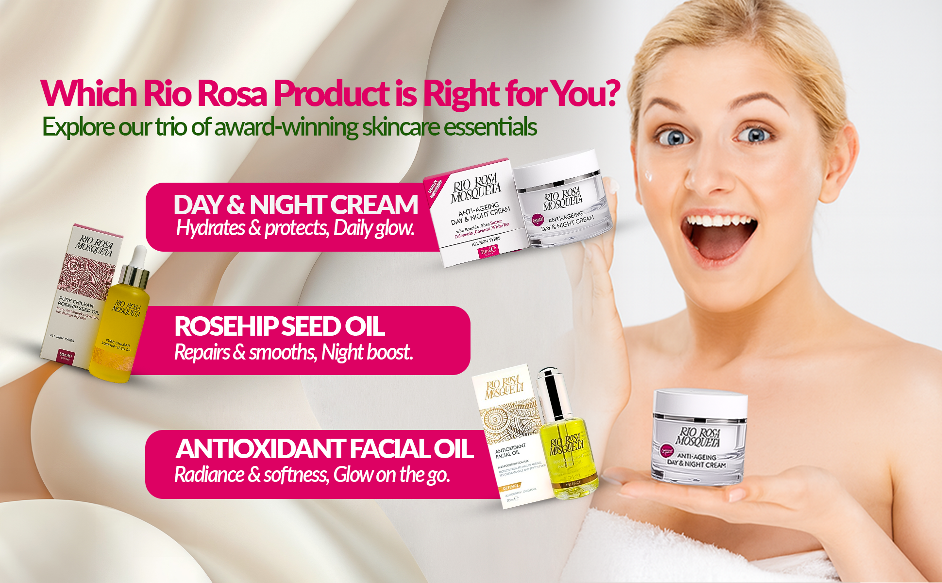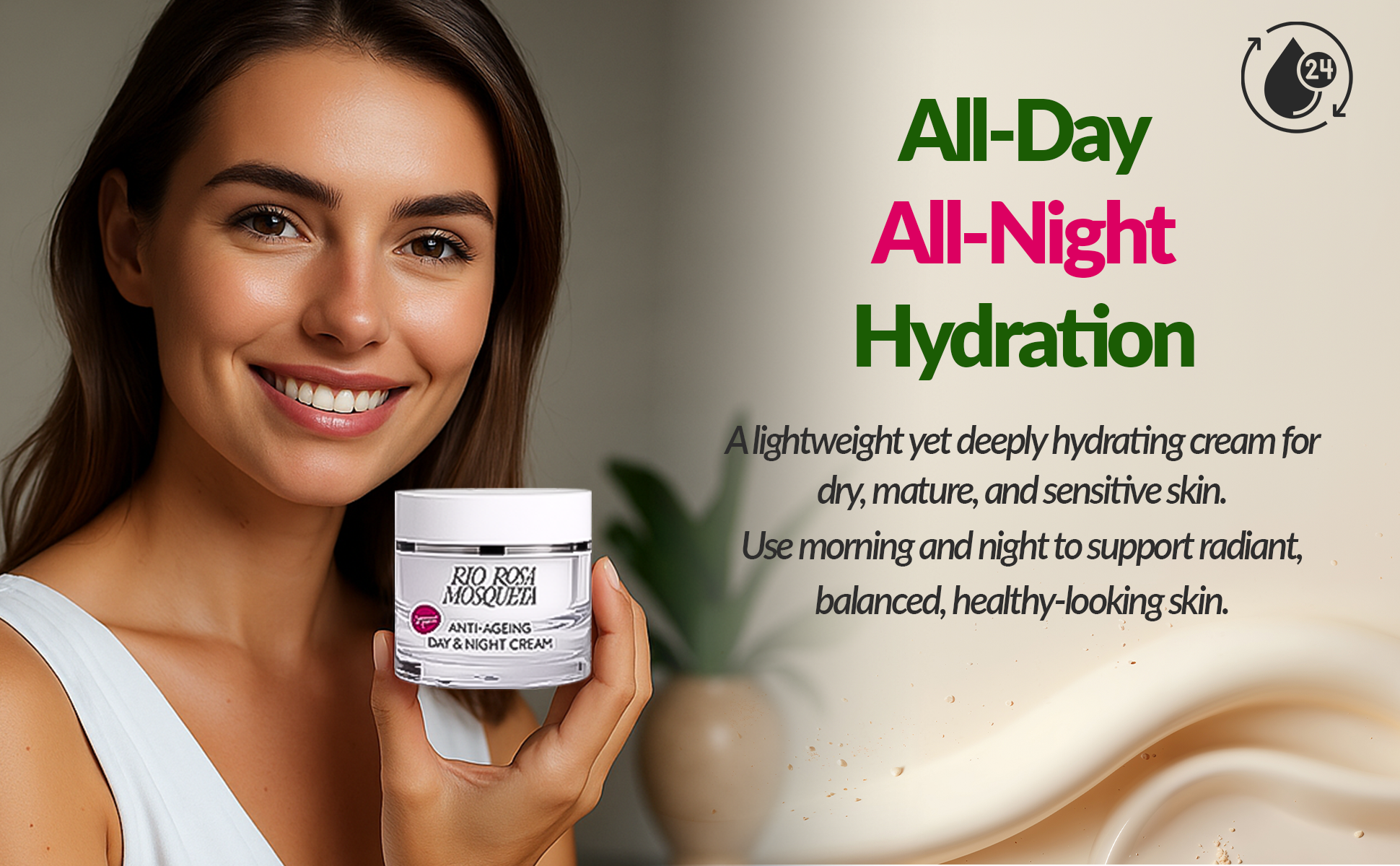 Rio Rosa Mosqueta Day & Night Cream – Hydrating Anti-Ageing Rosehip Moisturiser (50ml)