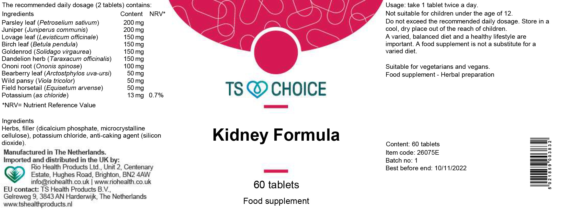 Potassium and botanical mix. Includes dandelion leaf, lovage leaf and parsley seed. Suitable for vegetarians.