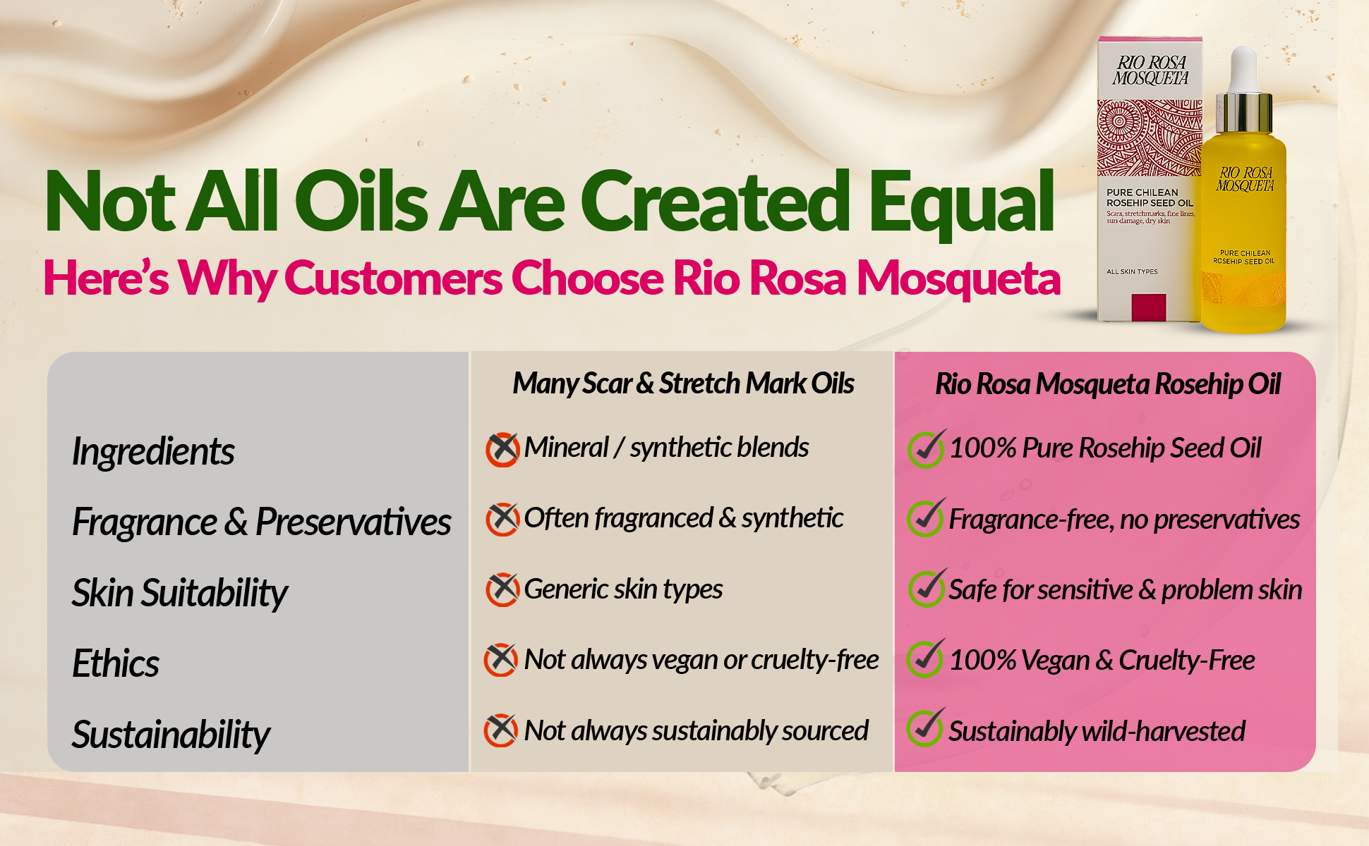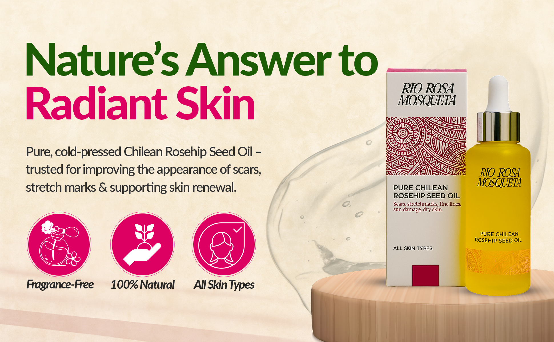 Elevate your skincare routine with Rio Rosa Mosqueta Pure Chilean Rosehip Seed Oil. Experience the transformative power of nature's beauty secret today!