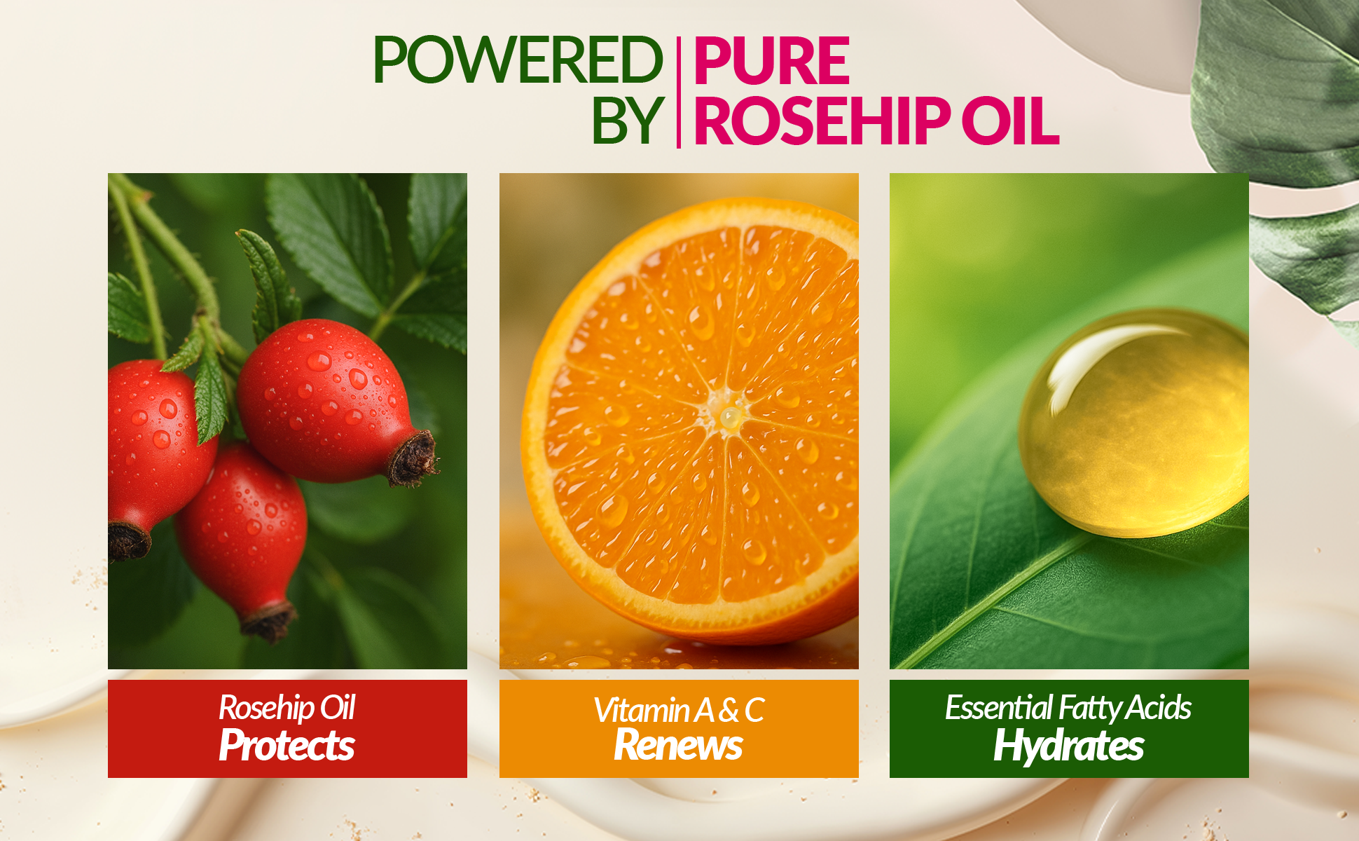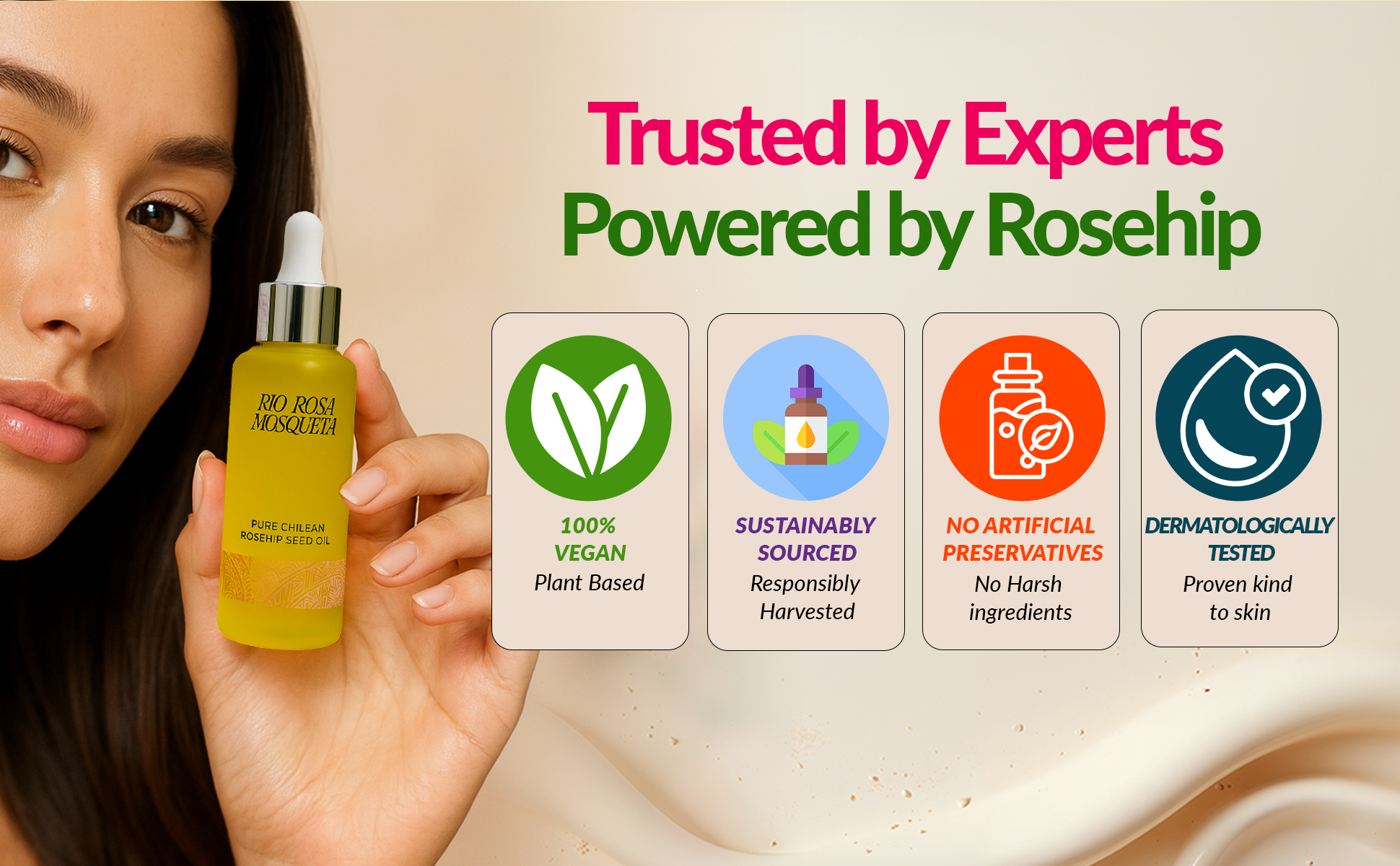 Pure Chilean Rosehip Seed Oil: Extracted from the seeds of wild rosehips grown in the pristine valleys of Chile, our rosehip seed oil is of the highest quality, ensuring maximum effectiveness.