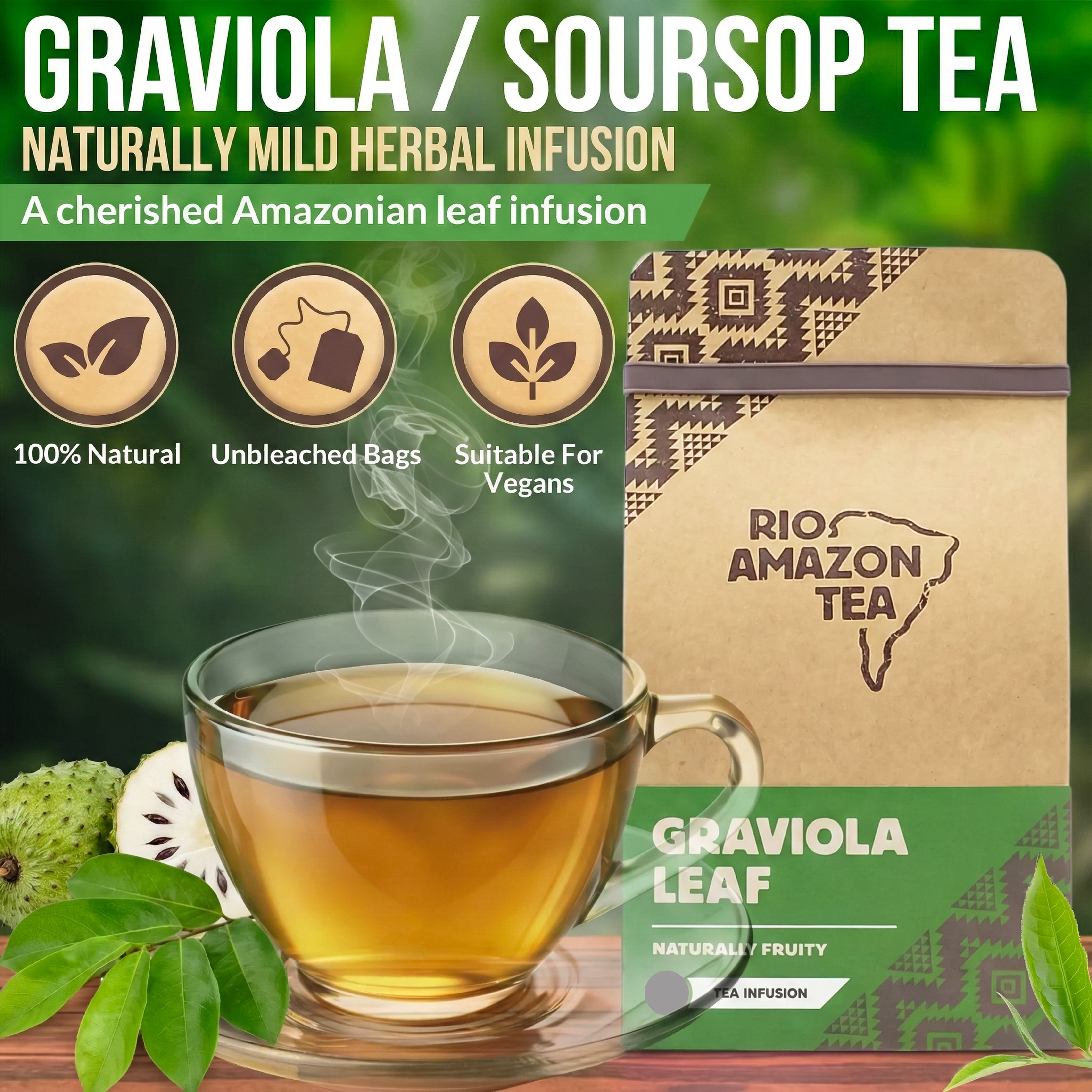 Discover the vibrant taste and natural goodness of Rio Amazon Graviola / Soursop Tea.