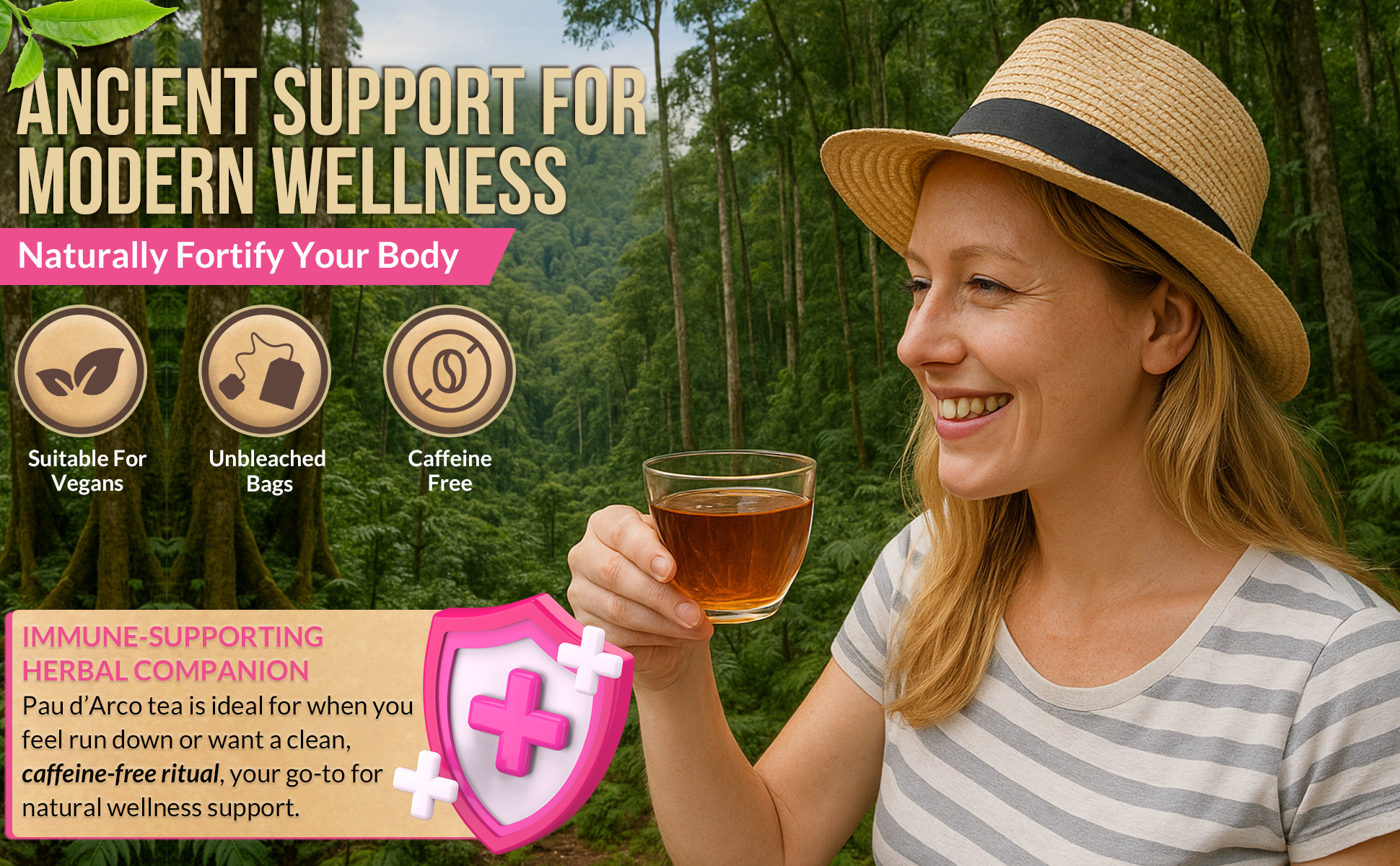 Made from the inner bark of the Tabebuia impetiginosa tree, also known as Lapacho, this traditional herbal infusion has been valued for centuries for its natural ability to support immunity, aid gentle detoxification, and promote everyday balance.