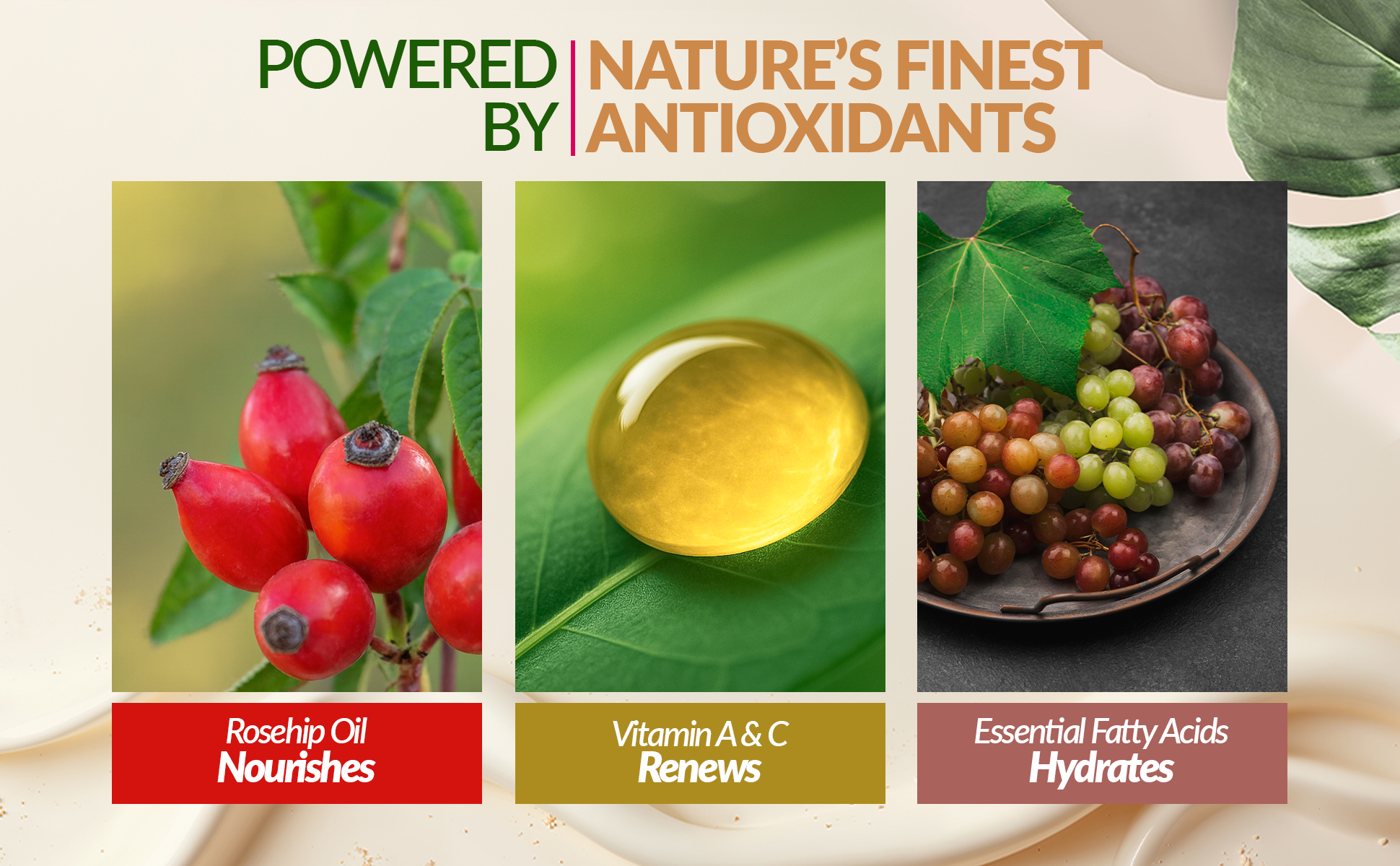 • Antioxidant-Rich Blend – Powered by a blend of botanical oils including rosehip, sacha inchi and cranberry seed oil to help protect against oxidative damage.