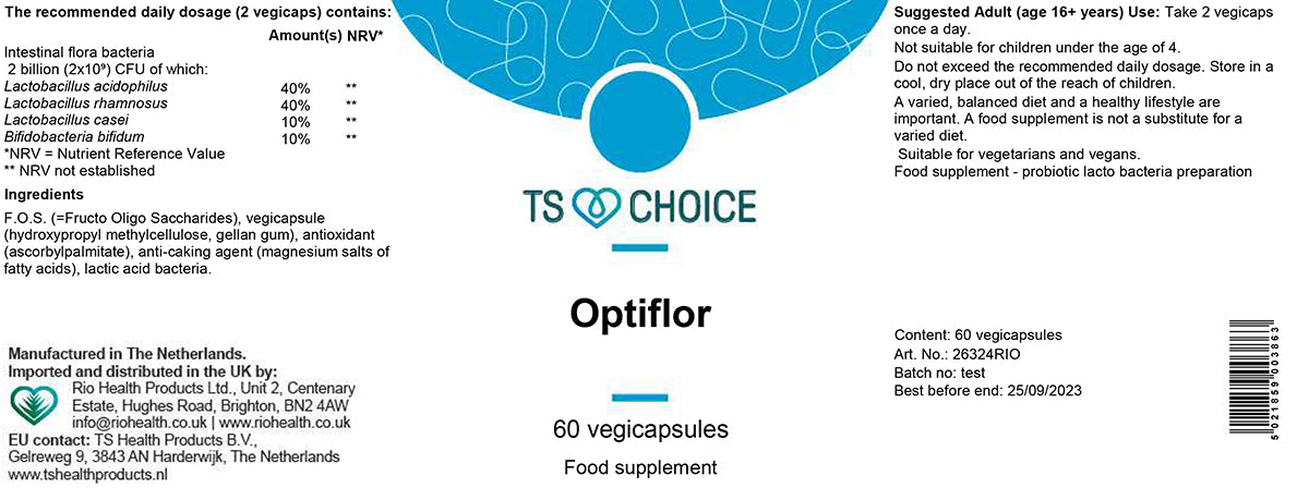 F.O.S (=Fructo Oligo Saccharides), vegicap (microcrystalline cellulose), antioxidant (ascorbylpalmitate), coating (magnesium stearate), lactic acid bacteria.