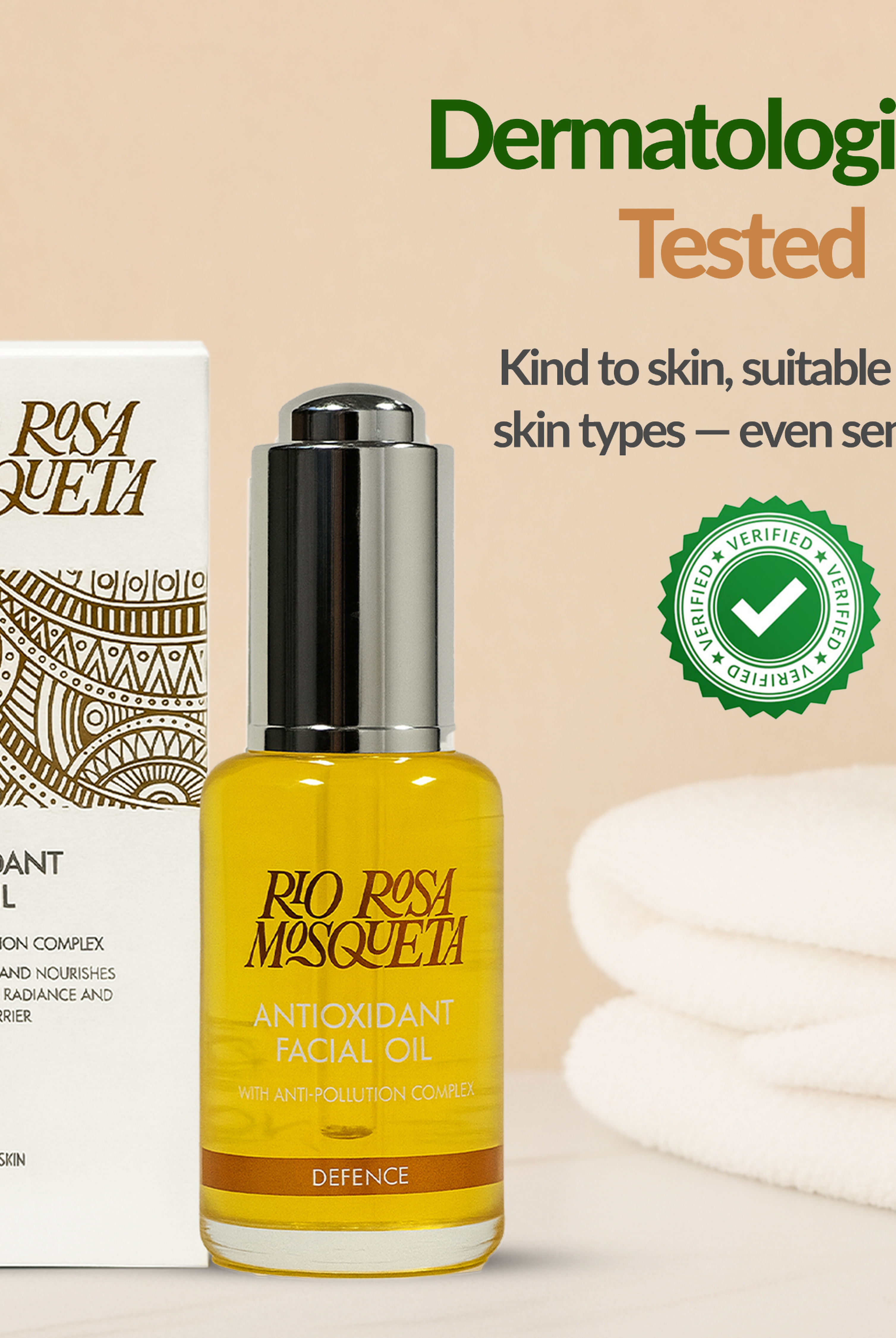 Rosa Mosqueta oil is packed with skin-boosting nutrients that help to prevent oxidative damage, including vitamins A,C and beta-carotene. It’s also a rich source of Essential Fatty Acids (EFAs) Omega 3,6 and 9. EFAs promote healthy cell regeneration at the basal layer of the epidermis. Over time, these healthy cells are pushed towards the surface to repair the skin, fading scars and blemishes. This oil’s composition is also unique, because it contains Trans Retinoic Acid (a derivative of vitamin A), which helps with the regeneration of skin cells. As the Trans Retinoic Acid is in a natural state, it’s gentle and non-irritating. Learn more!