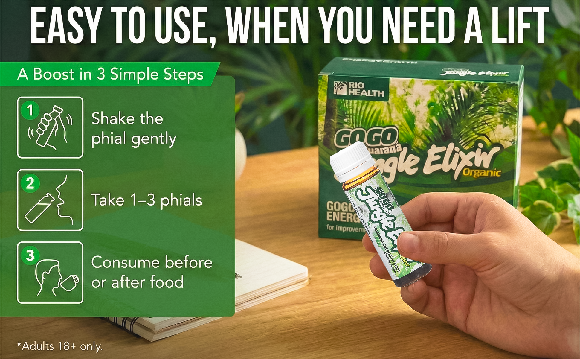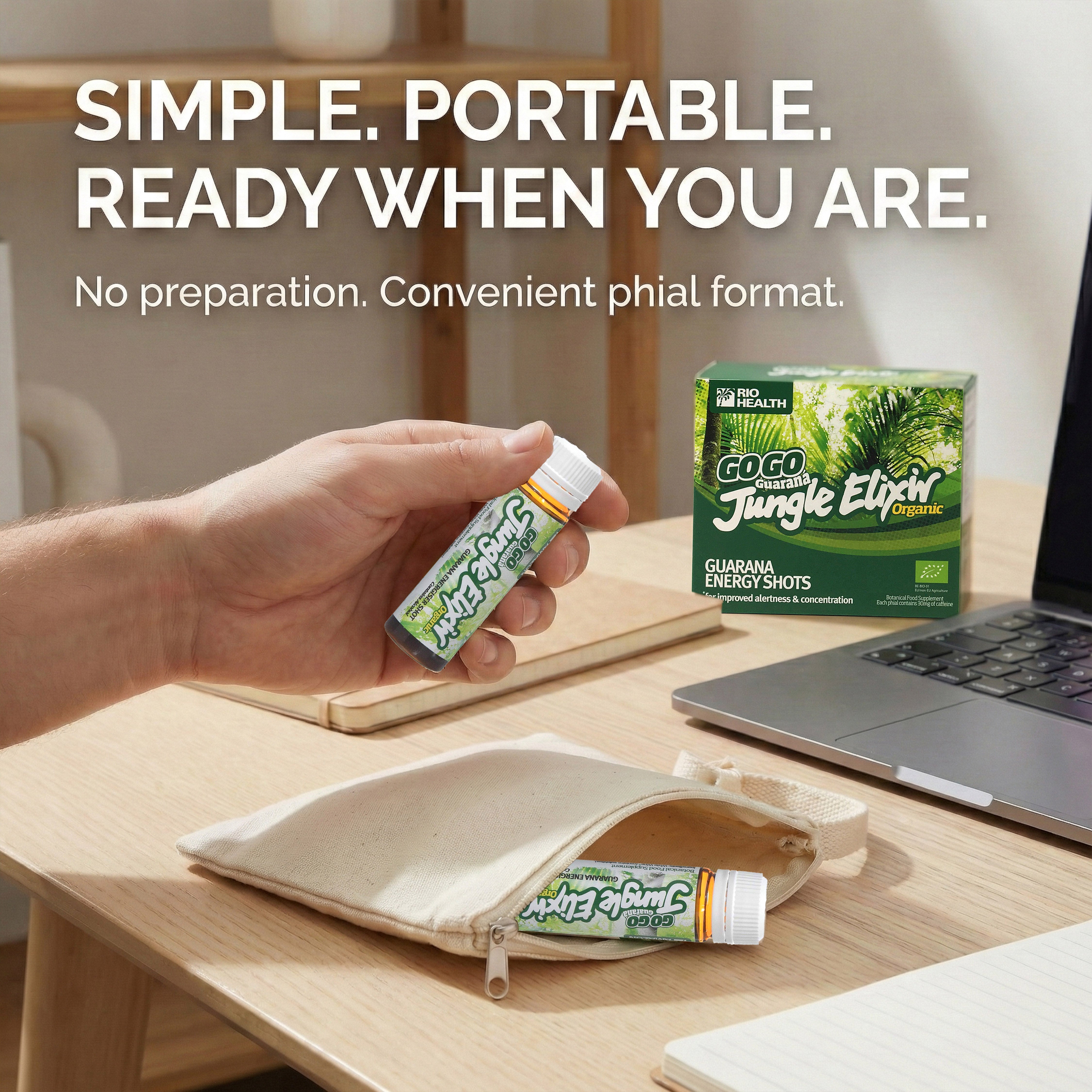 Made with certified organic ingredients and suitable for vegans, GoGo Guaraná Jungle Elixir is a convenient alternative to energy drinks, caffeine tablets, or highly processed stimulants — ideal for busy days, social occasions, or moments when focus matters.